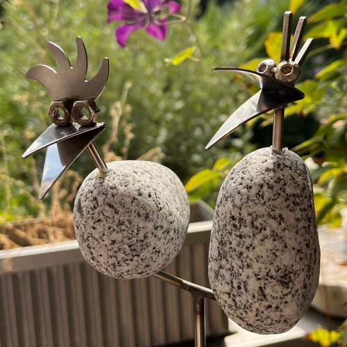 Steinvogel-Gartenstecker aus Edelstahl